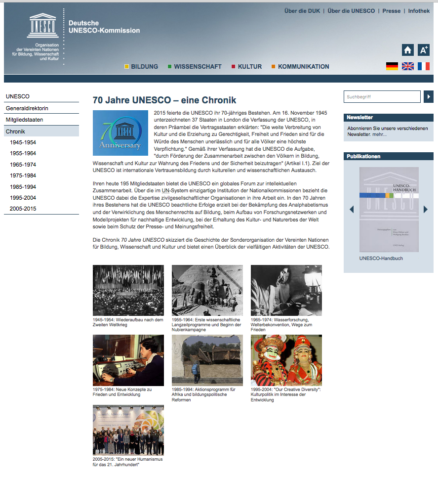 lag eine Chronik der UNESCO vor, die 2004 für das "UNESCO-Handbuch"